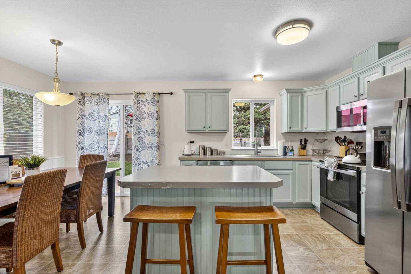 Experience the best of Central Oregon in this beautiful 2-story house, located at the end of a cul-de-sac. With access to skiing at Mt. Bachelor, hiking at Smith Rocks, and water sports on the Deschutes River, this house is perfectly situated. Featuring a master bedroom, open living area, and a fantastic backyard perfect for barbecuing and yard games. Book your stay now and make your visit to Bend unforgettable.