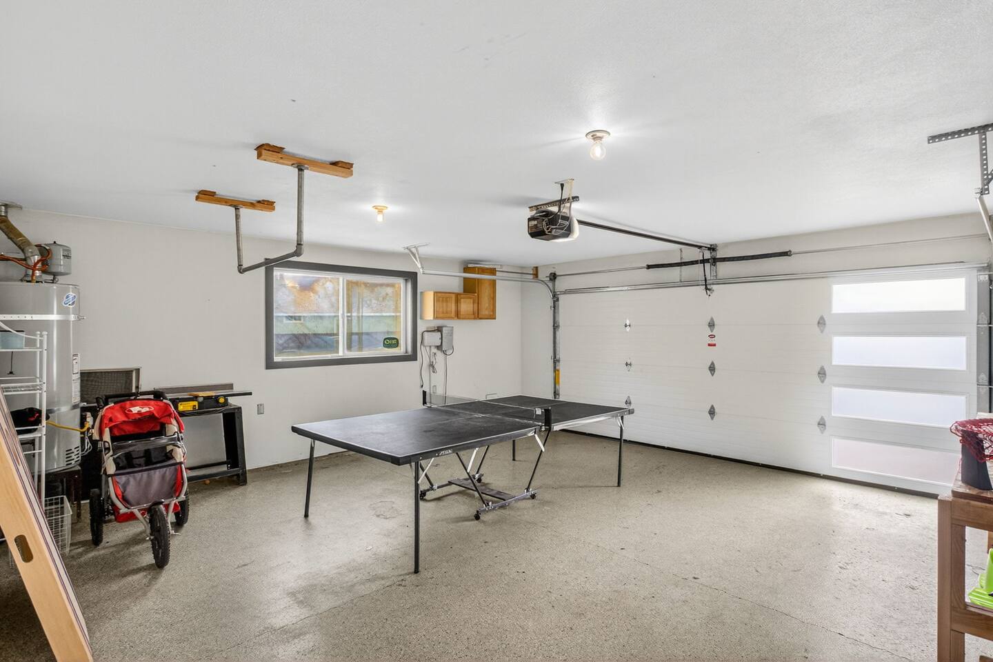 This 3 bedroom 2.5 bath room house is an optimal floor plan for ease and comfort. Primary suite with 3/4 master bathroom (walk in shower stall) and half bath on the main level, wide open living area with hardwood flooring, 2 bedrooms and a full bathroom (w/ tub) upstairs. 2 car garage for parking or ping pong. Fantastic backyard for BBQing playing yard games and enjoying the shade provided by the large mature landscaping. A/C River Float tubes available Hammock Full kitchen Outdoor BBQ Wifi included as well as TV There is lots to do in Bend and even more across Central Oregon but if you want to stay in there's plenty here too.